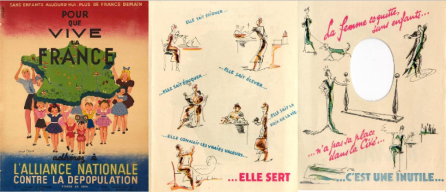 Après la Première Guerre mondiale, ces déboires politiques et économiques répétés ont conduit la classe politique française à adopter progressivement des politiques publiques natalistes pour changer la dynamique démographique du pays. Avec notamment une loi votée en 1920 par la chambre « Bleu Horizon » qui interdit toute publicité pour les méthodes contraceptives et renforce les sanctions concernant l’avortement. Ces politiques étaient bien sûr portées de manière particulièrement agressive par la droite nationaliste et revancharde, défenseuse de l’église et des valeurs familialistes, mais elles faisaient malgré tout l’objet également d’un consensus politique assez large. Elles figurèrent notamment parmi les éléments non négligeables de continuité entre les politiques publiques menées sous le Maréchal Pétain et par la IVe République dans l’immédiat après-guerre.