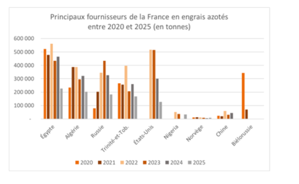 Graphique 3 : Principaux fournisseurs de la France en engrais azotés