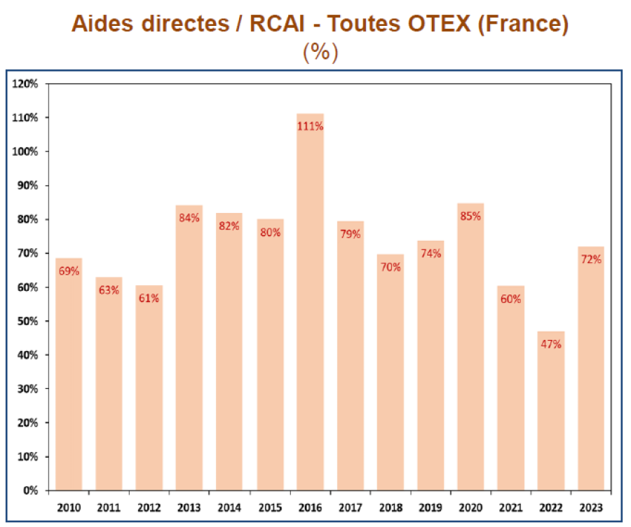 Graphique 4 : pourcentage des aides directes dans le résultat courant avant impôt