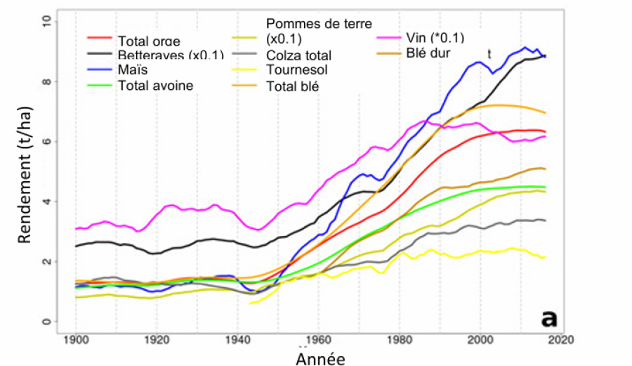 - À ces incertitudes économiques s’ajoutent des aléas climatiques de plus en plus fréquents et intenses, qui contribuent à une stagnation, voire à une baisse des volumes produits sous l’effet du dérèglement climatique, tout en accroissant le risque de pertes localisées. Le stress hydrique, les épisodes de gel ou encore les inondations menacent désormais chaque année notre production, historiquement fondée sur une agriculture à haut rendement à l’hectare. Même si les productions agricoles n’ont pas toutes la même sensibilité aux chocs climatiques, si cette tendance se confirme, à système productif constant, l’ensemble des cultures sera confronté dans les prochaines années à des baisses de rendements durables, ainsi qu’à une volatilité accrue des productions. Ces évolutions en dents de scie perturberont non seulement l’économie des exploitations, mais aussi l’ensemble des filières et des chaînes de transformation.