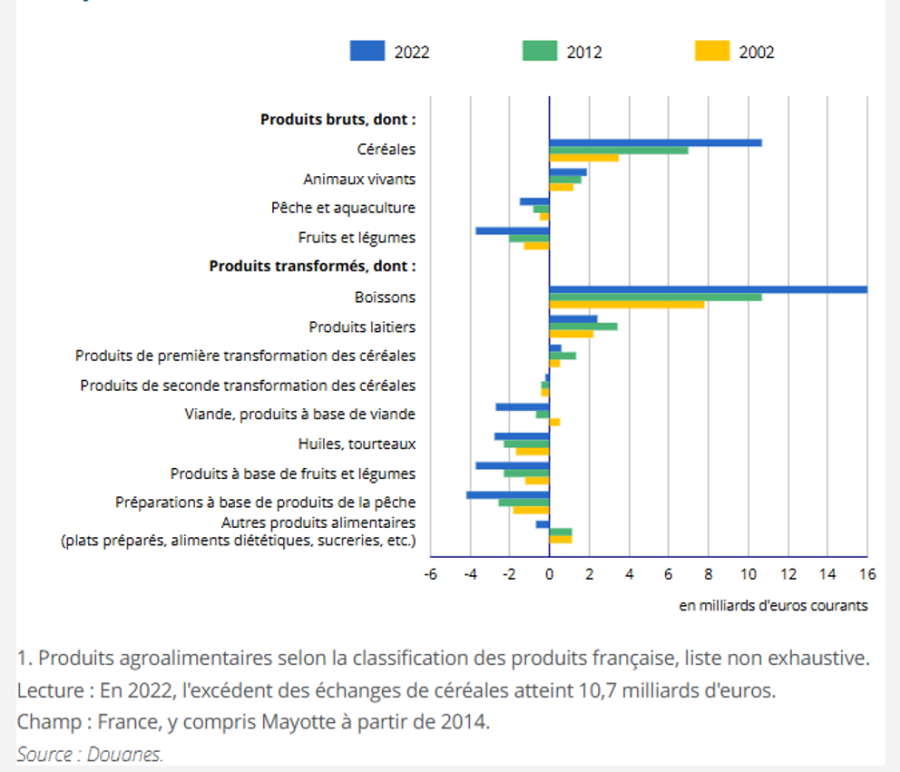 Graphique 5 : solde pour différents produits des échanges agroalimentaires français